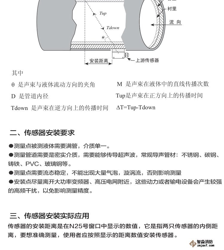 *直管段應(yīng)滿足上游10D,下游5D,距泵出口處30D(D指管徑)。