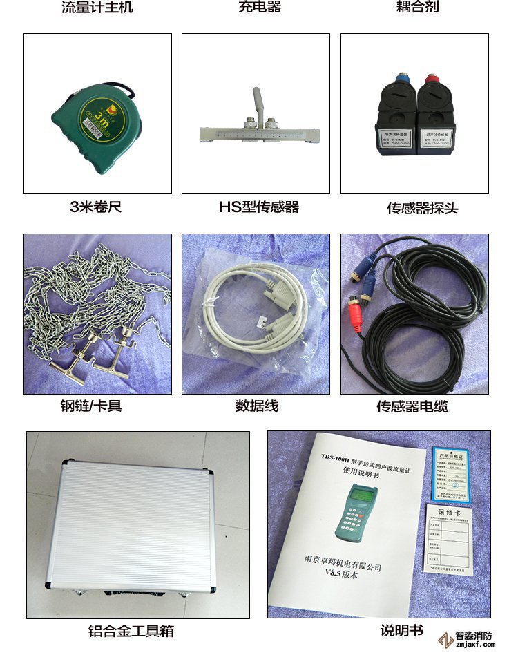 手持式超聲波流量計。其測量管徑在0-700mm,精度±1%。