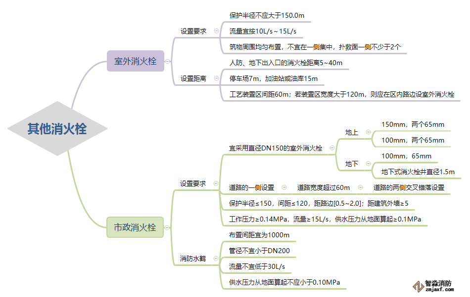 7.4.16 城市交通隧道里的室內消火栓:宜設置獨立的消防給水系統;水量最大時,壓力不小于0.3MPa,超過0.7MPa設減壓設施;入口處設水泵接合器和室外消火栓;室內消火栓的間距≤50m,雙向同行車道或單行通行但大于3車道時,應雙面間隔設置;隧道內允許通行危險化學品的機動車,且隧道長度超過3000m時,應配置水霧或泡沫消防水槍。