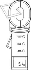 此時,扣壓扳機,打開鉗口,鉗住待測回路,讀取電阻值。