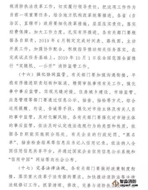 《意見(jiàn)》還從加強(qiáng)組織領(lǐng)導(dǎo)、強(qiáng)化協(xié)同監(jiān)管、完善法律法規(guī)、抓好督促落實(shí)4個(gè)方面提出了深化消防執(zhí)法改革的保障措施。