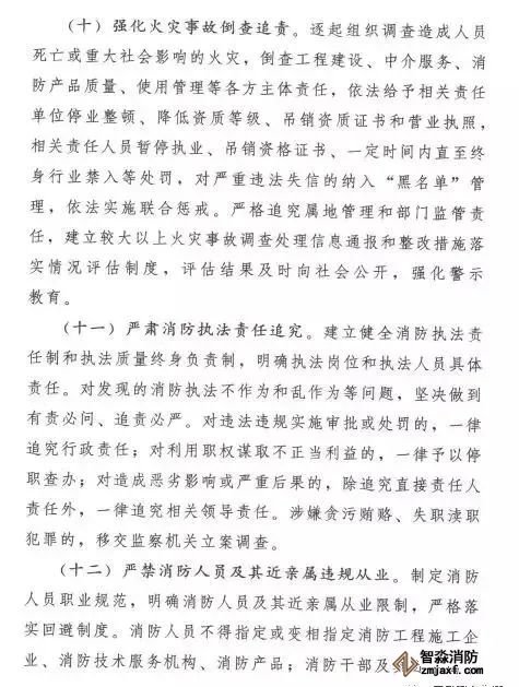 在加強(qiáng)事中事后監(jiān)管方面,實(shí)行“雙隨機(jī)、一公開(kāi)”監(jiān)管,明確抽查范圍、抽查事項(xiàng)和抽查細(xì)則,合理確定抽查比例和頻次;針對(duì)火災(zāi)多發(fā)頻發(fā)的行業(yè)和領(lǐng)域,適時(shí)開(kāi)展集中專項(xiàng)整治,對(duì)隱患突出、有嚴(yán)重違法違規(guī)記錄的單位,實(shí)施重點(diǎn)監(jiān)管;建立消防舉報(bào)投訴獎(jiǎng)勵(lì)制度,鼓勵(lì)群眾參與監(jiān)督;將消防違法違規(guī)行為記入信用記錄,嚴(yán)重違法失信企業(yè)納入“黑名單”管理,依法實(shí)施聯(lián)合懲戒;完善“互聯(lián)網(wǎng)+監(jiān)管”,運(yùn)用物聯(lián)網(wǎng)和大數(shù)據(jù)技術(shù),實(shí)時(shí)化、智能化評(píng)估消防安全風(fēng)險(xiǎn),實(shí)現(xiàn)精準(zhǔn)監(jiān)管;強(qiáng)化火災(zāi)事故倒查追責(zé),逐起組織調(diào)查造成人員死亡或造成重大社會(huì)影響的火災(zāi),倒查工程建設(shè)、中介服務(wù)、消防產(chǎn)品質(zhì)量、使用管理等各方主體責(zé)任,嚴(yán)肅責(zé)任追究。