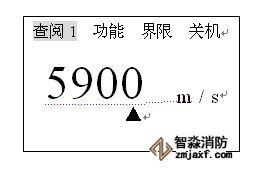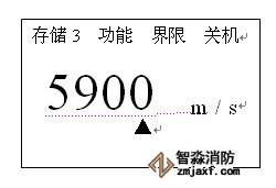 將探頭插頭插入主機探頭插座中,按一下ON鍵,聽到兩次蜂鳴聲屏幕出現顯示,其中顯示的聲速為上次關機前使用的聲速,顯示內容見下圖: