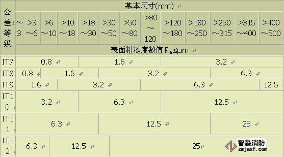 表3 公差等級(jí)與表面粗糙度值(用于通用機(jī)械)