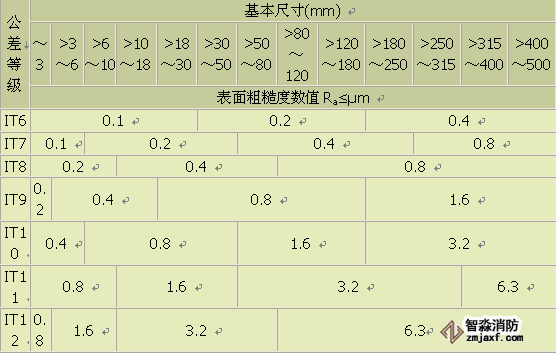 表2 公差等級(jí)與表面粗糙度值(用于普通精密機(jī)械)