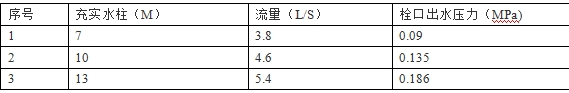 消火栓栓口連接水帶連接試水裝置,打開消火栓閥門放水,此時水槍充實水柱與試水裝置上的壓力表顯示的栓口出水壓力對應關系見附表2.